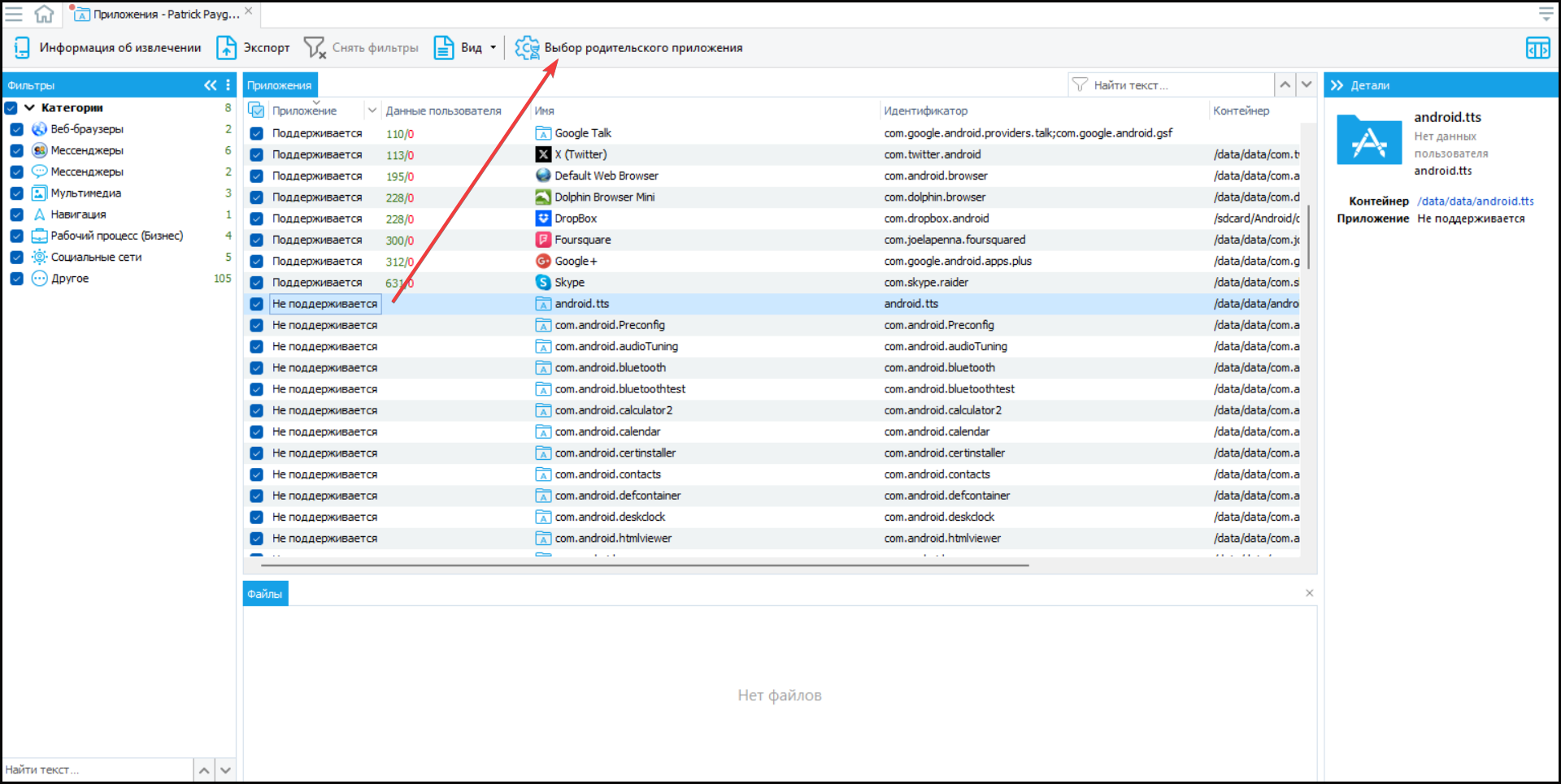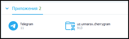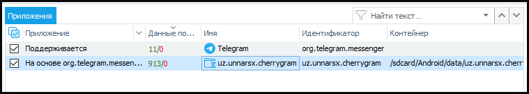 Приложение, проанализированное таким образом, также появляется в общем списке извлеченных данных с соответствующим обозначением — с иконкой и идентификатором в названии.